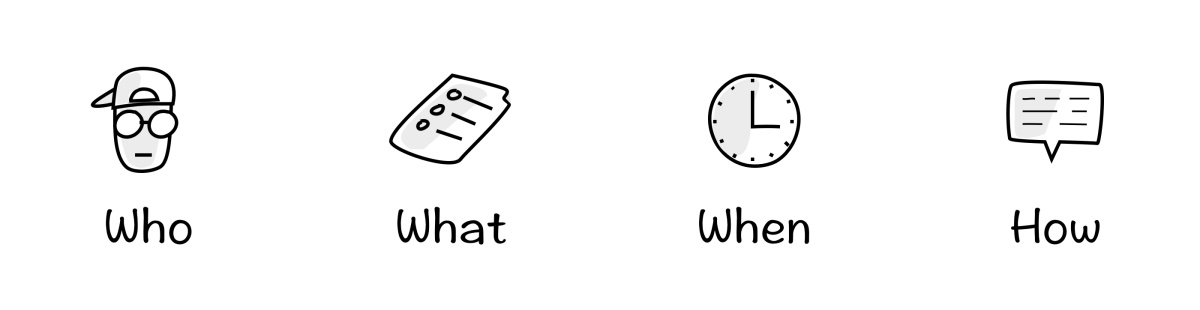 就刚才的例子来说,就可以回答为:产品经理因为XX原因,对设计稿不满意(Why);所以我们需要多出几个方案(What);今天我就在收集资料,尝试从XX角度给几个方案让大家一起讨论(How)。简单的问询,用WWH模型已经足够。